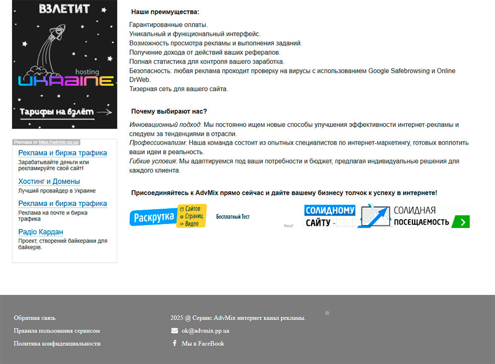 азработка веб-сайта «Сервис AdvMix» — комплексной системы интернет-рекламы и биржи трафика.