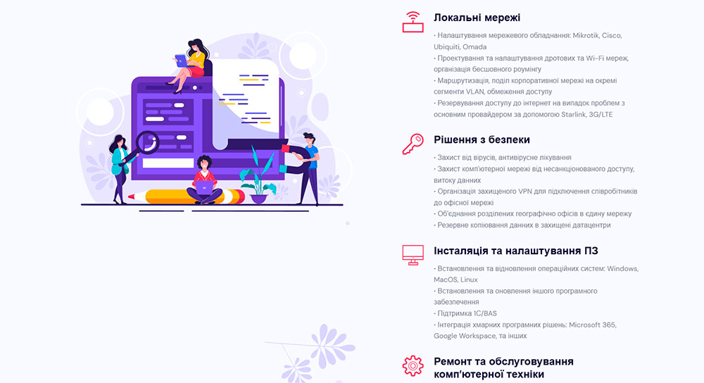 Корпоративный веб-сайт IT компании, предоставляющей услуги комплексного IT-аутсорсинга и системного администрирования для бизнеса в Киеве и по всей Украине.
