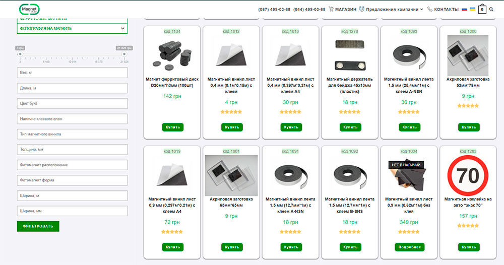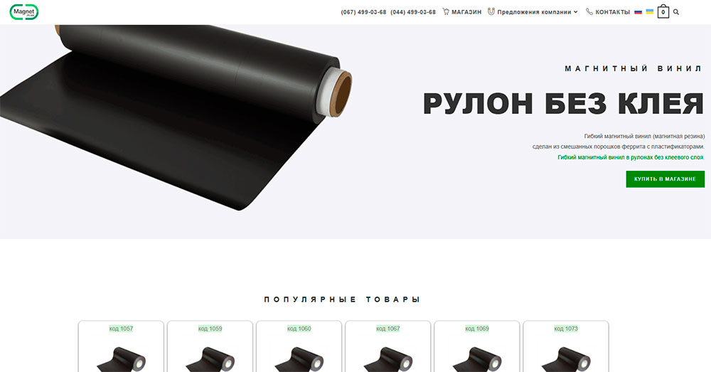 Сайт-портфолио / Интернет-магазин компании «Magnet.in.ua» — завода-производителя и поставщика магнитной продукции.
