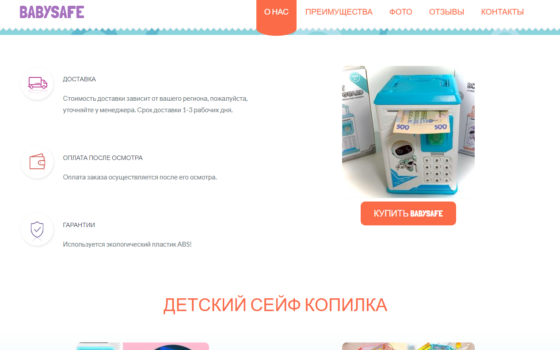 САЙТ ЛЕНДИНГ ПРОДАЖА ДЕТСКОЙ ИГРУШКИ СЕЙФ