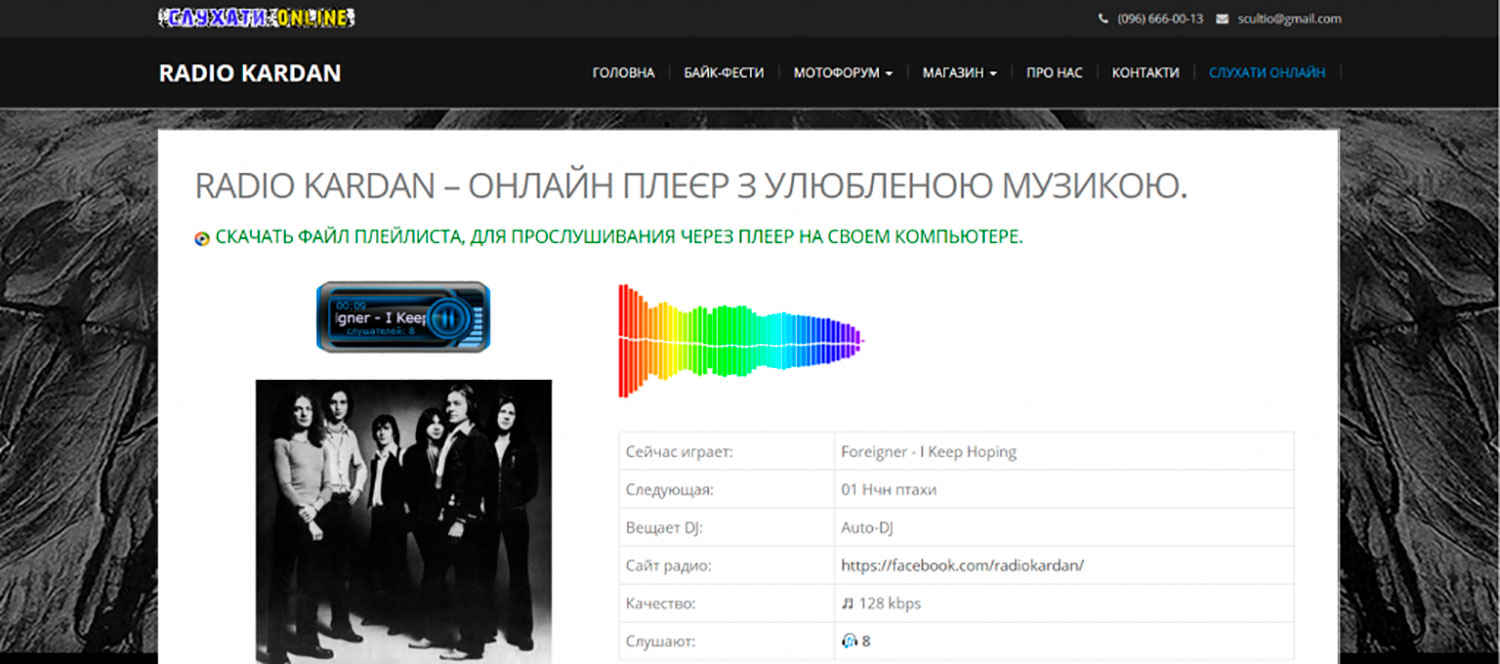 Сайт Радио онлайн. Создание сайта с нуля. Заказчик поставил задачу создание сайта радио станции с нуля. Была установлена система управления сайтом вордпресс. Radio Kardan — проект, створений байкерами для байкерів. У час засилля попси ми є одним із останніх оазисів справжньої рок-музики. На нашій хвилі ви не почуєте бридотної попси. Наші напрями — рок-музика для байкерів.